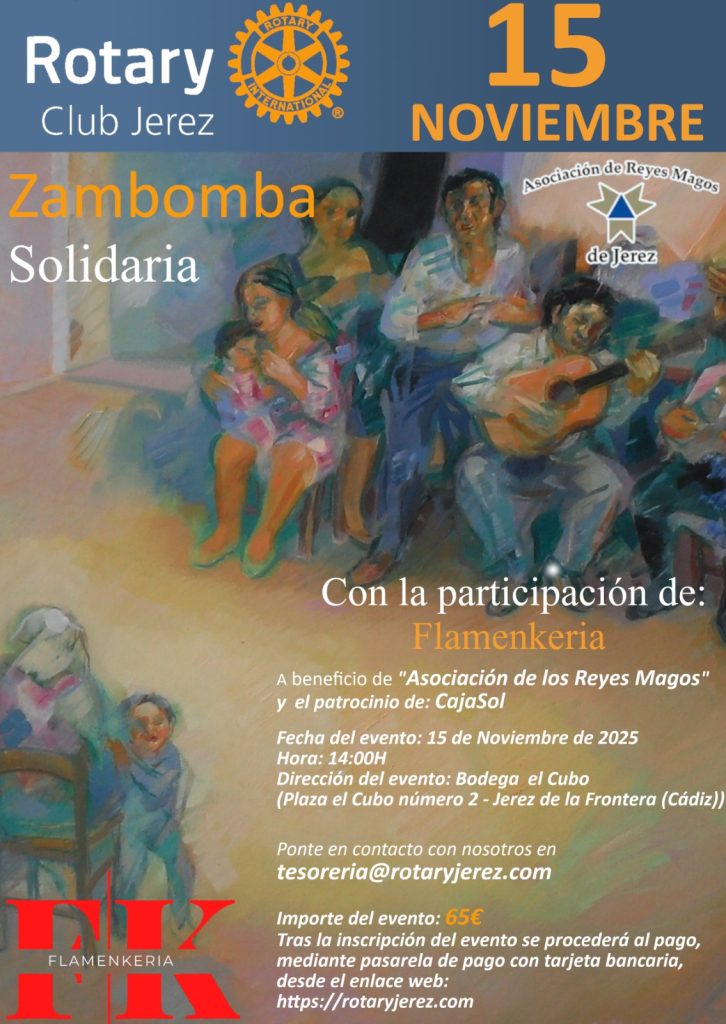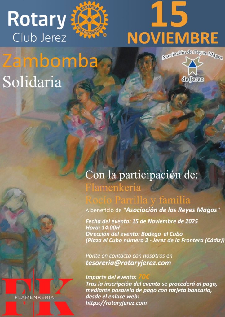 https://www.rotaryjerez.com/wp-content/uploads/2025/10/Zambomba_2025-726x1024.jpg 726 1024 Club Rotary Jerez Club Rotary Jerez https://www.rotaryjerez.com/wp-content/uploads/2025/10/Zambomba_2025-726x1024.jpgInscripcion 🎄✨ Zambomba Solidaria 2025 – Rotary Club Jerez ✨🎄 Este 15 de noviembre de 2025, el Rotary Club Jerez te invita a compartir una jornada muy especial en nuestra tradicional Zambomba Solidaria, a beneficio de la Asociación de los Reyes Magos de Jerez. 📍 Lugar: Bodega El Cubo (Plaza El Cubo nº 2, Jerez…